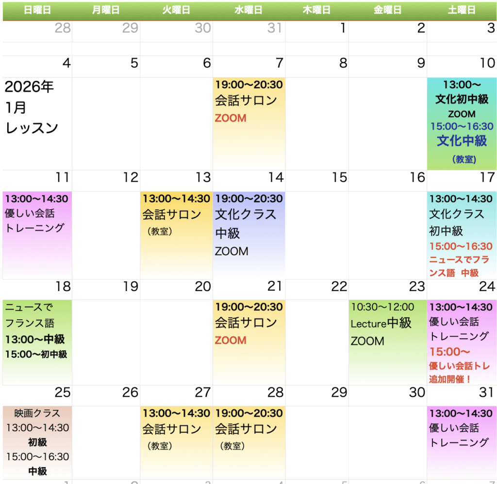 ※適切なレベルのレッスンをご案内させていただくため、問い合わせフォームから、ご希望のクラスやフランス語のご経験などをお知らせ下さい。